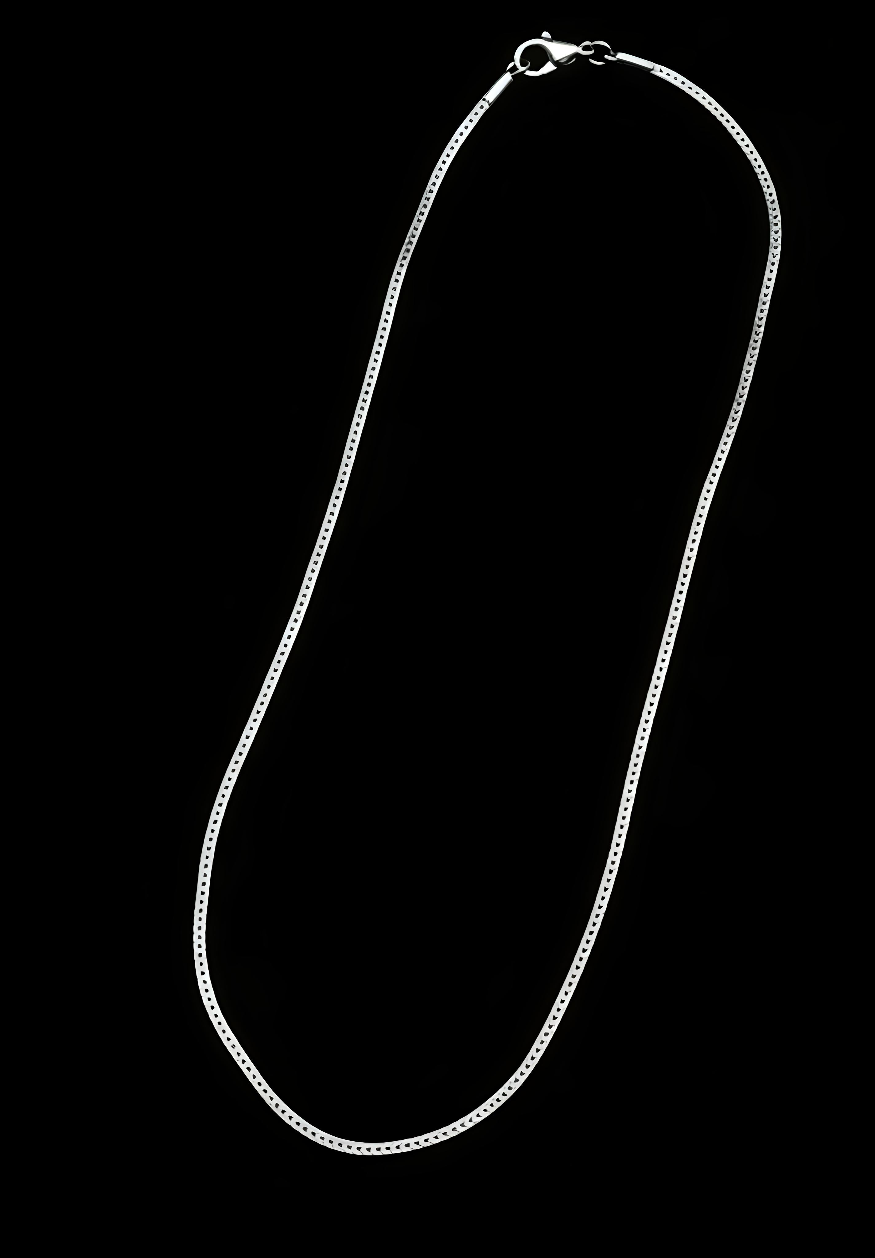 To maintain the mirror-like shine of your silver chain, keep it in an airtight box when not in use. Keep it away from perfumes, hairsprays, and water to prevent tarnishing and keep it looking brand new.