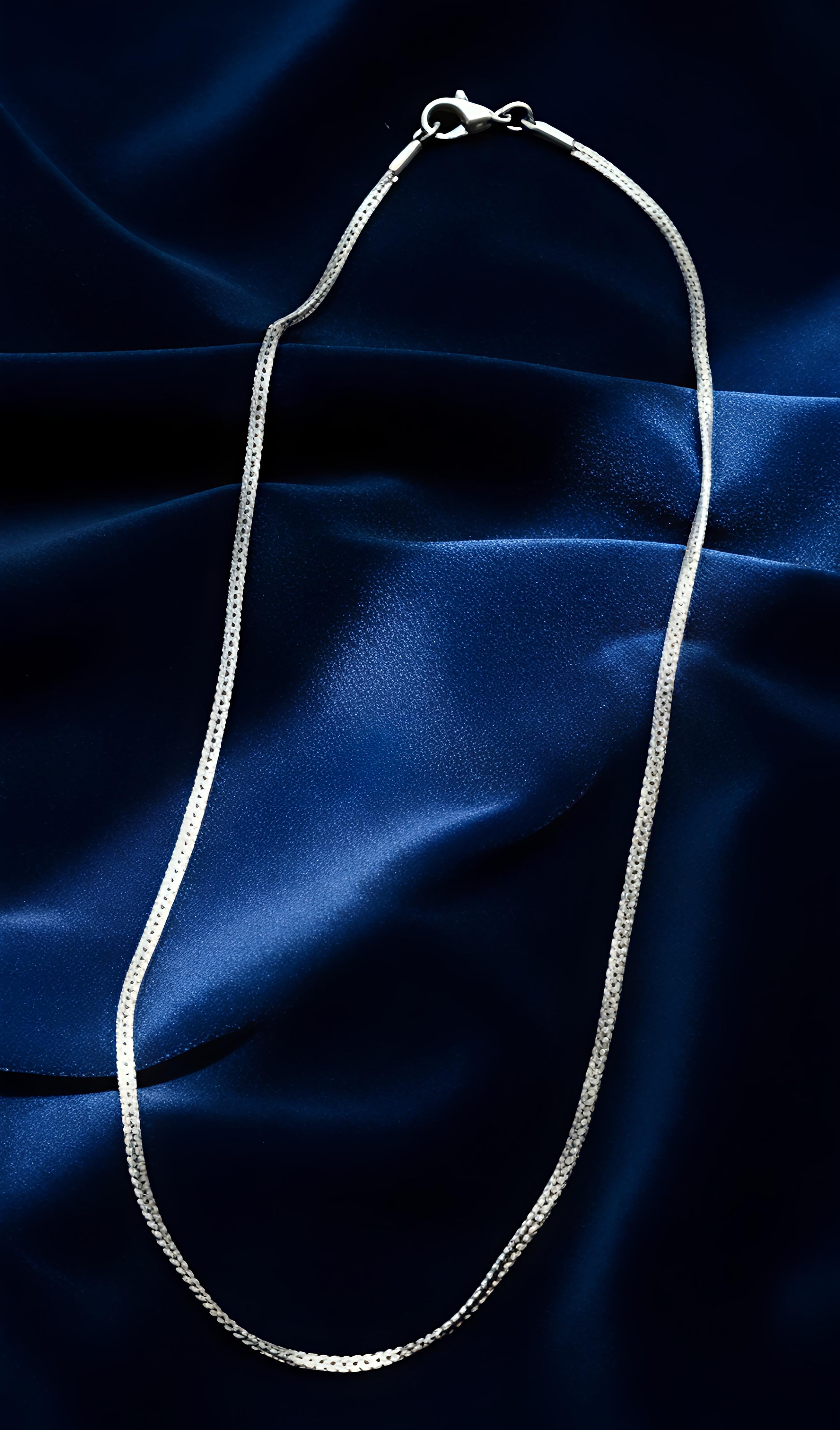 Elevate your everyday grace with this premium 92.5 Sterling Silver ladies' chain. Featuring an intricate and flexible woven design, this piece is crafted for the woman who seeks a perfect blend of sophistication and shimmering elegance.