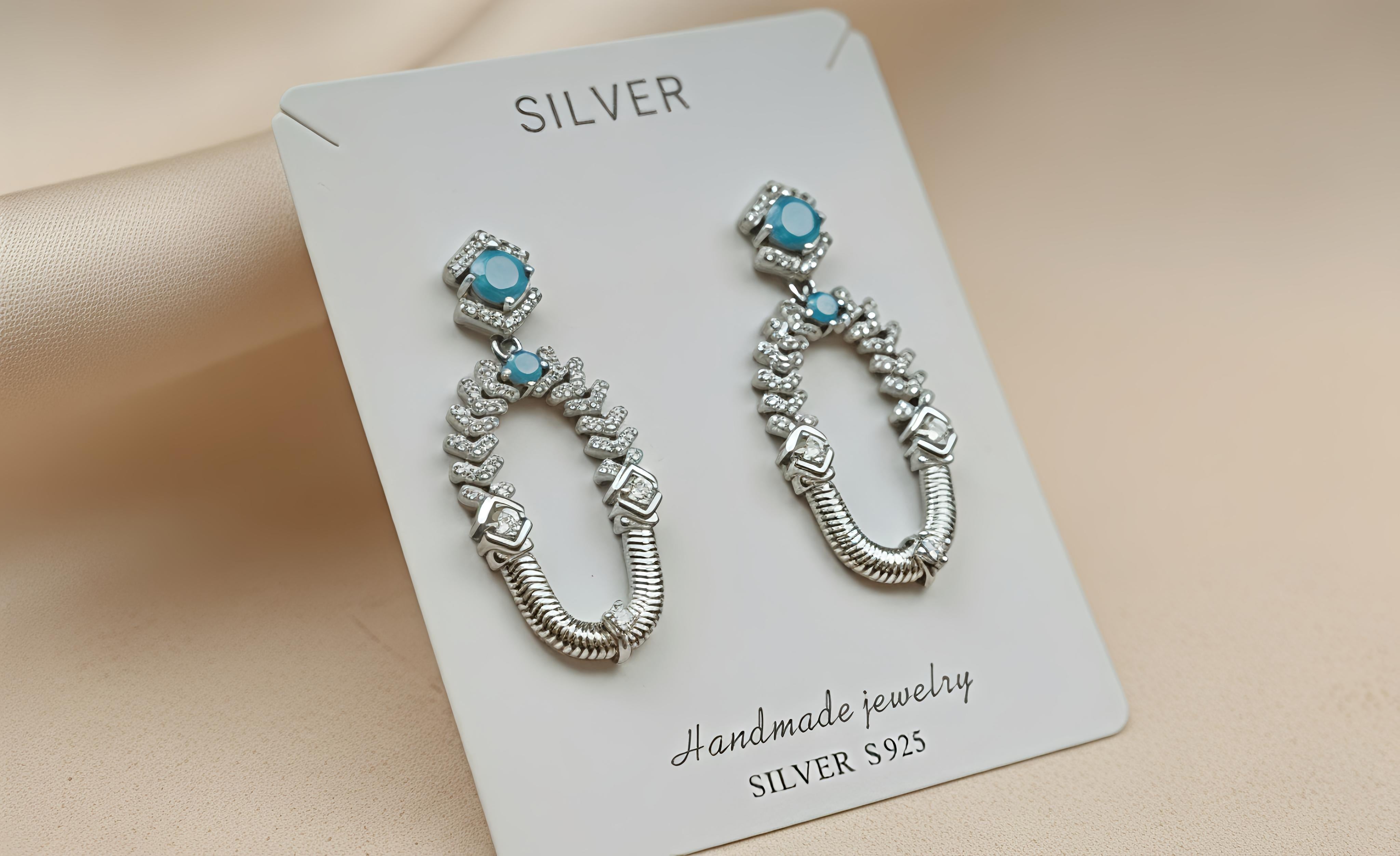 Elevate your jewelry game with these breathtaking Turquoise Geometric Drop Earrings. Meticulously crafted from premium 92.5 Sterling Silver, these earrings blend vibrant color with intricate silver artistry, making them a must-have for the modern woman who loves to stand out.