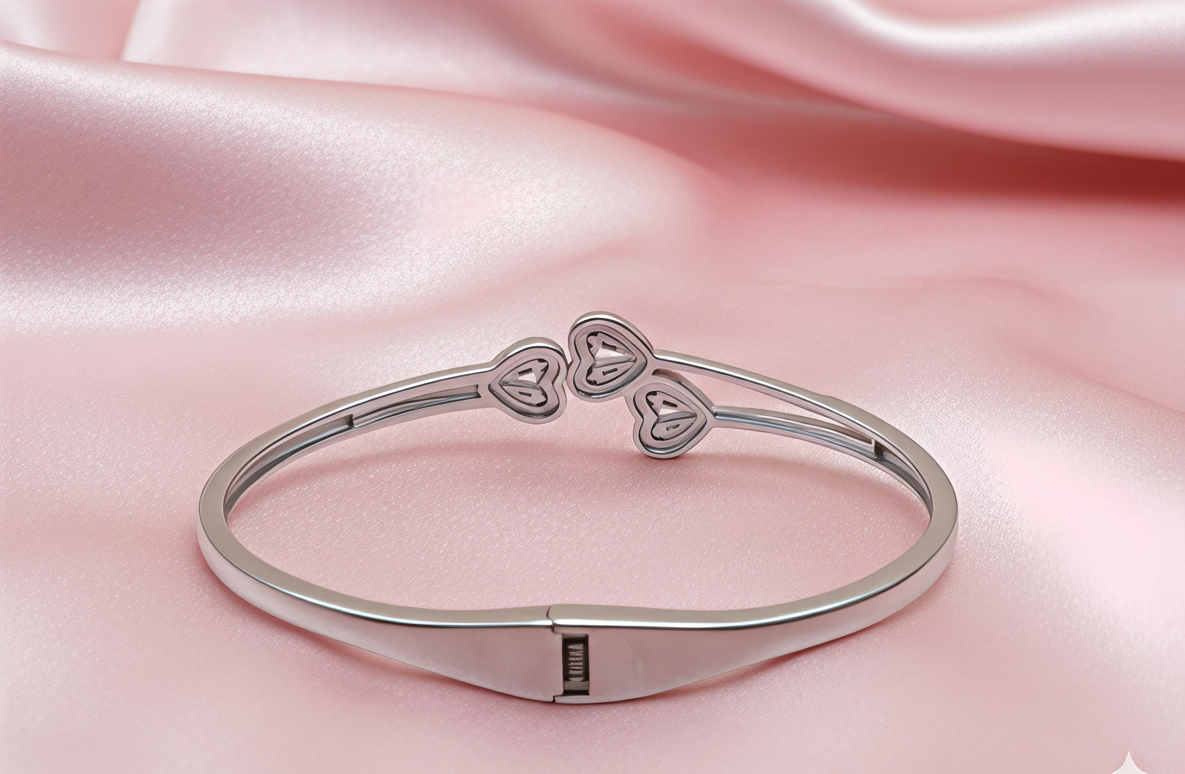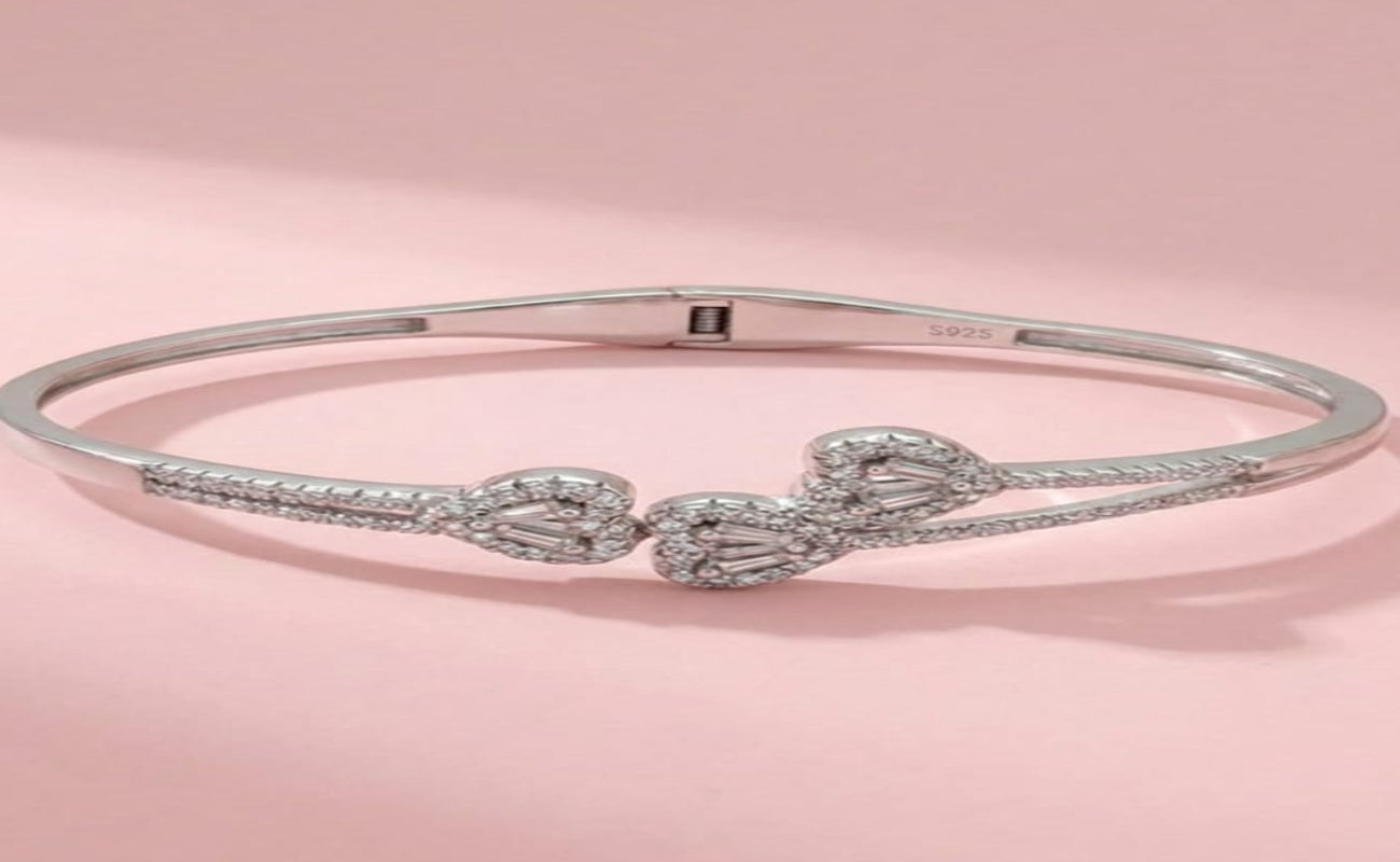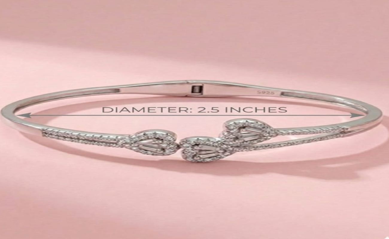 92.5 Silver Elevate your st...Orisil Jewels 925 Sterling Silver Triple Heart Crystal Bangle Bracelet – Hinged Spring Design (2.5 Inches)