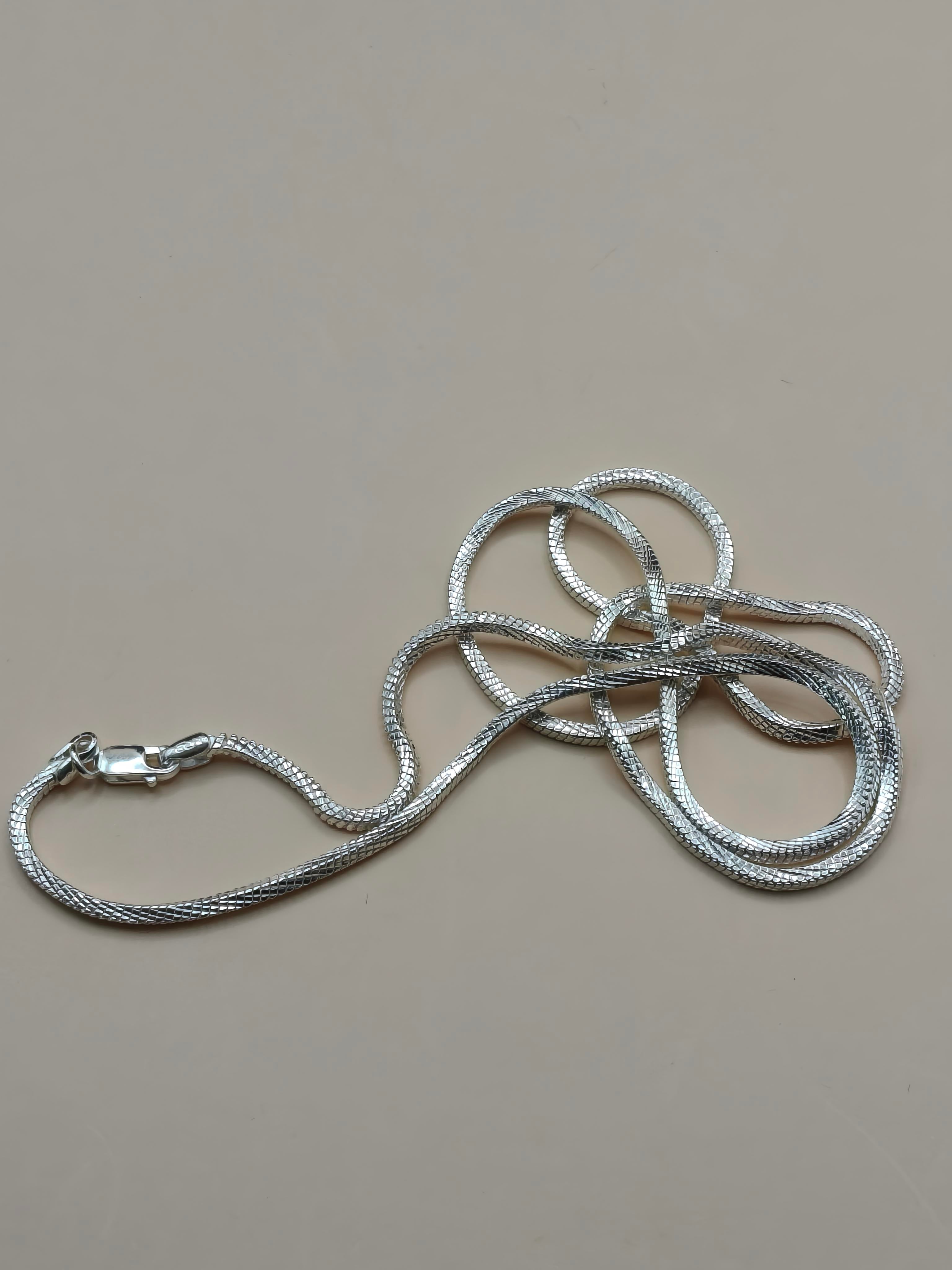 Silver snake chain necklace on a beige background92.5 Sterling Silver Sleek Snake ChainMan wearing a silver necklace against a neutral background92.5 Sterling Silver Sleek Snake Chain92.5 Sterling Silver Sleek Snake Chain92.5 Sterling Silver Sleek Snake Chain