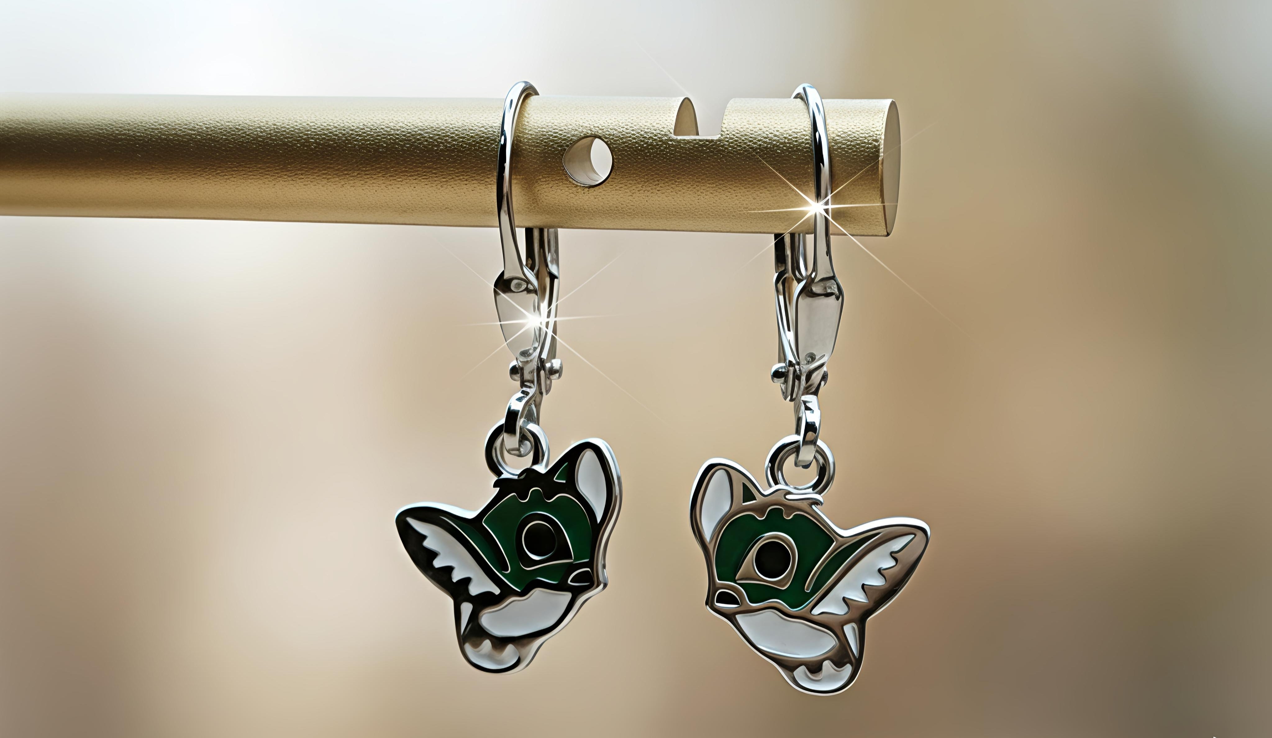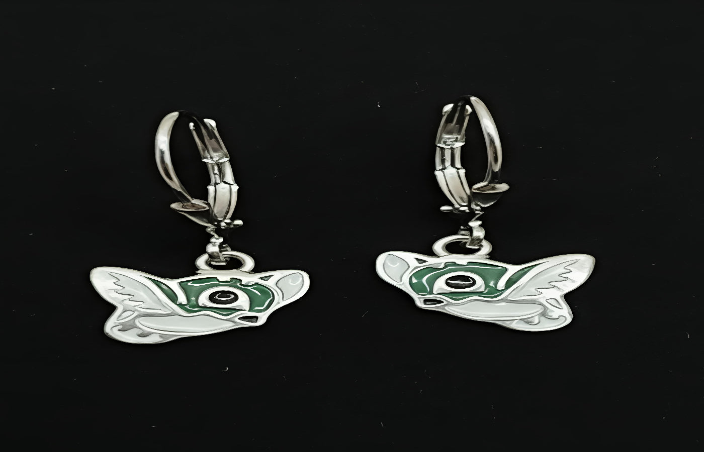Design: Intricate animal-inspired charms with vibrant green, white, and black enamel detailing.