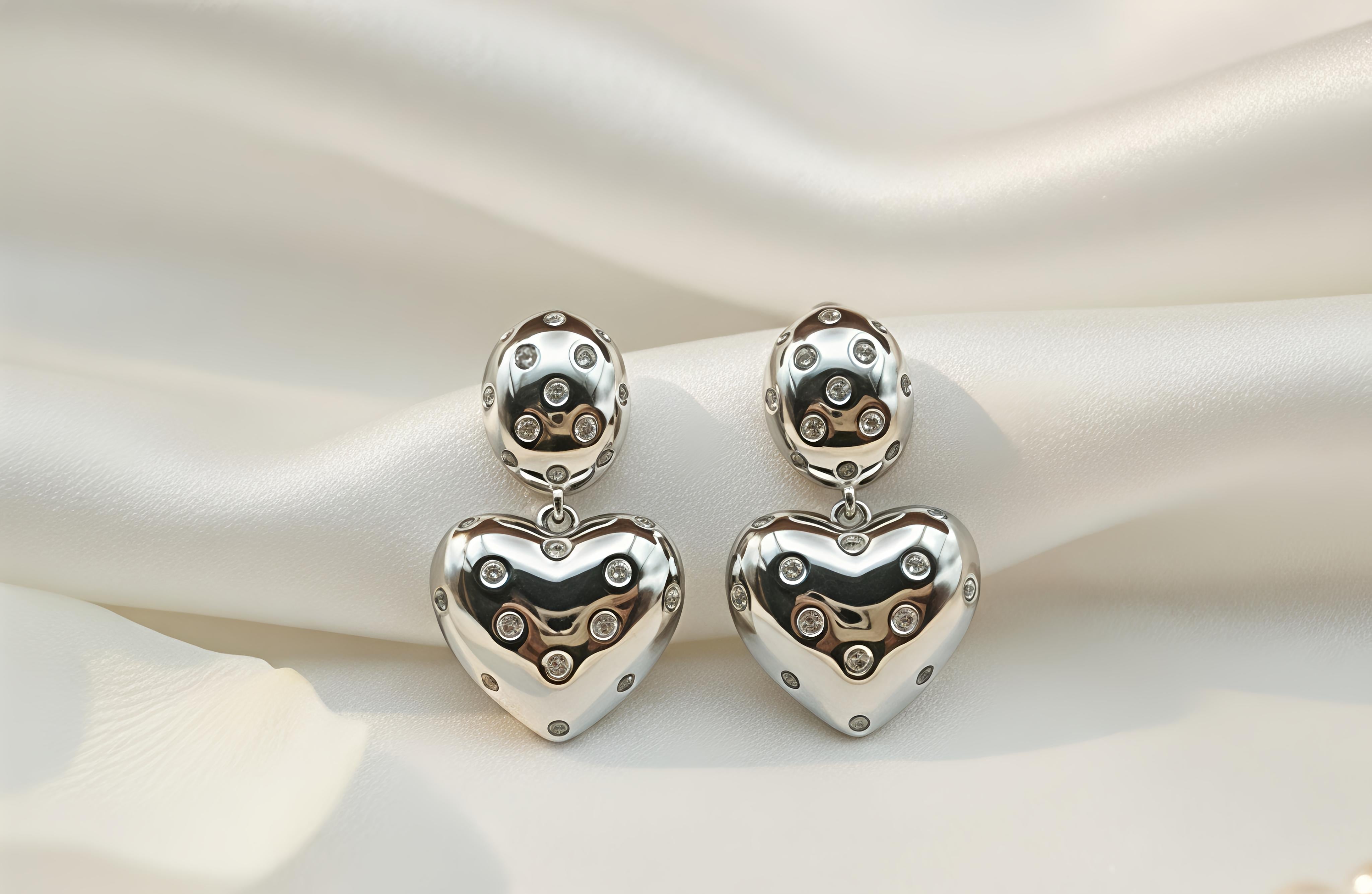 Statement Silhouette: A sleek studded oval top connected to a bold heart drop, designed to be the highlight of your ensemble.
