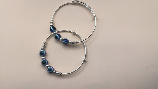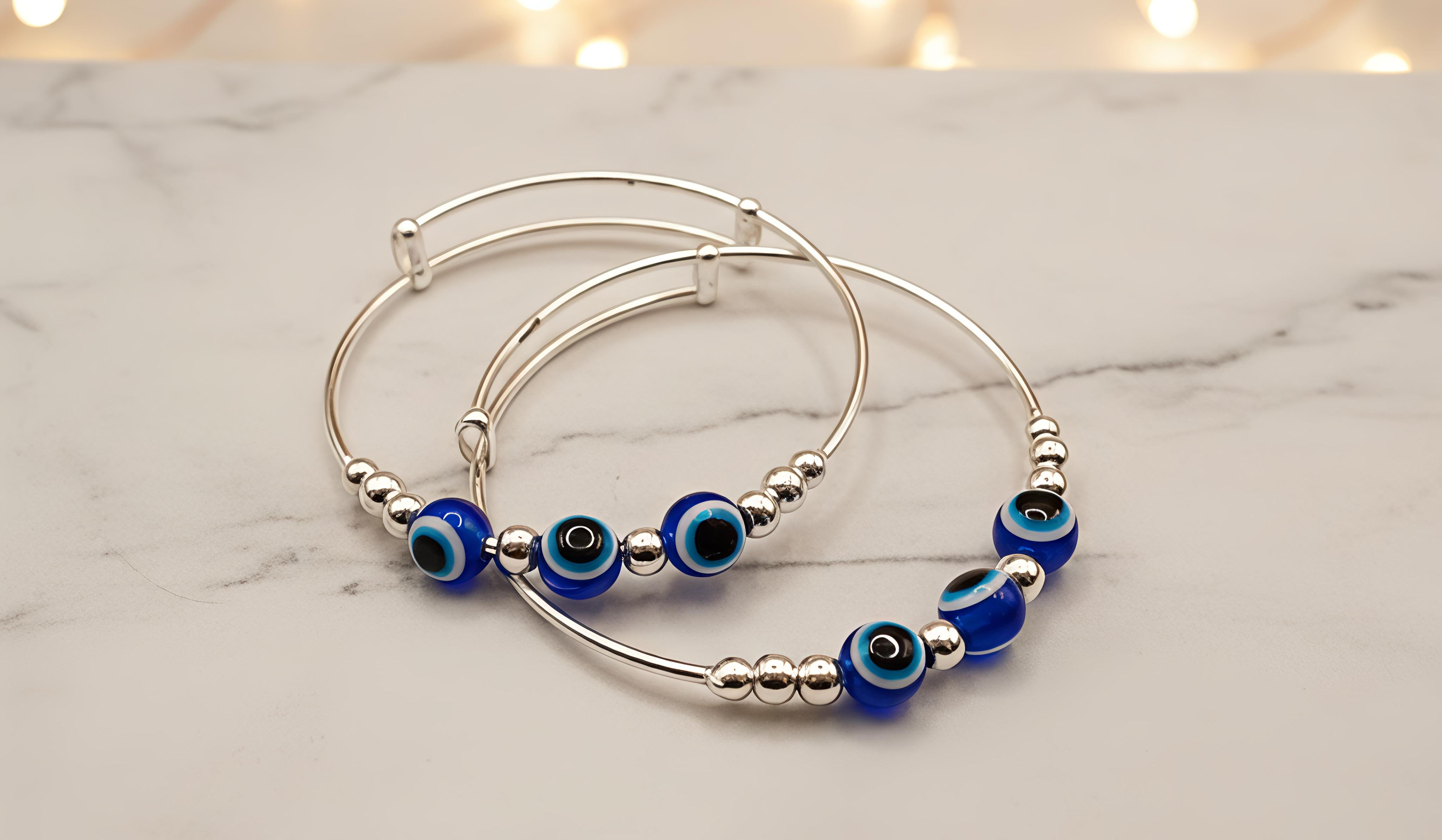 Design: Featuring classic deep blue evil eye beads and polished silver globes, this piece combines traditional significance with a modern aesthetic.
