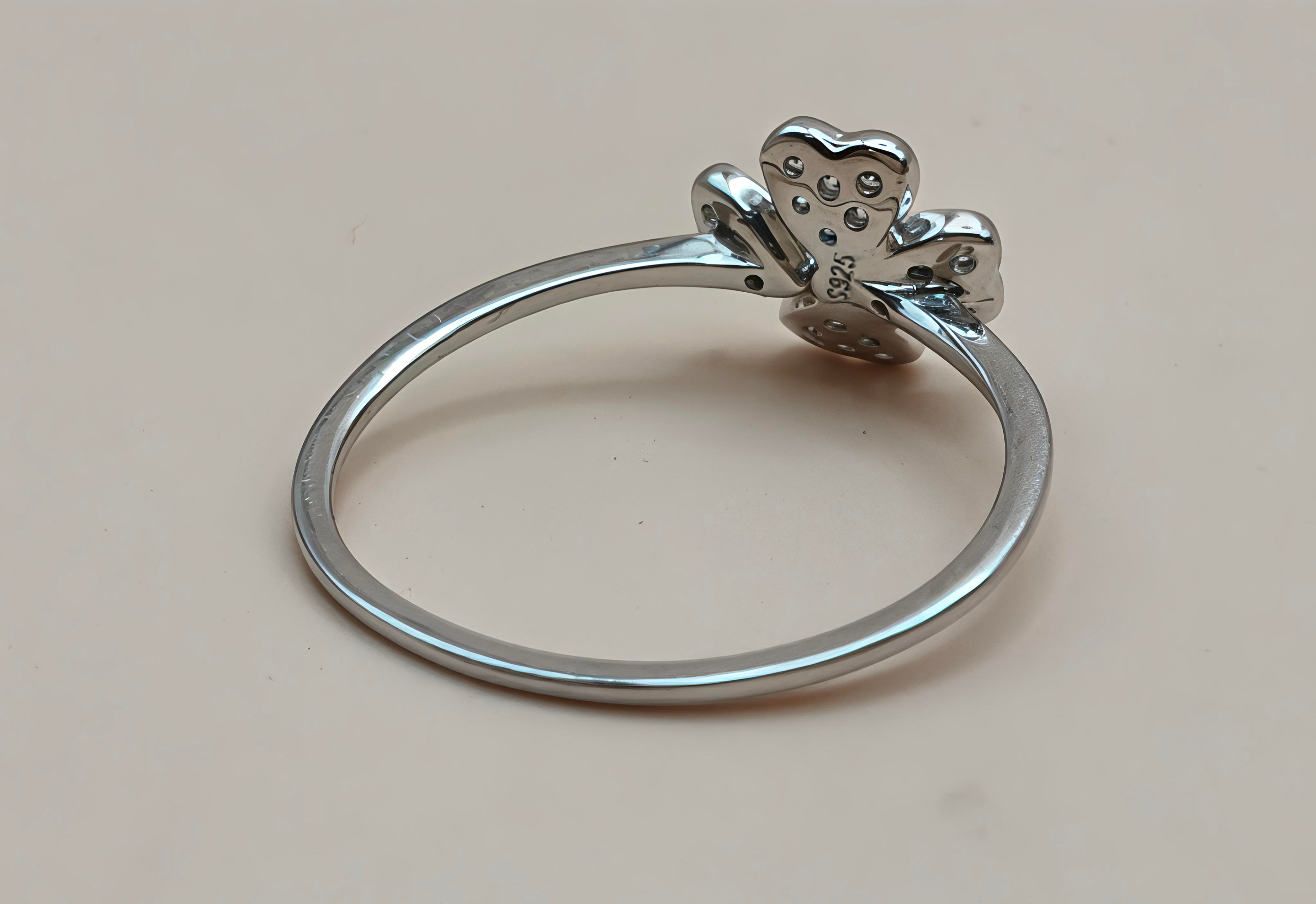 Orisil Jewels: Dainty Four-Leaf Clover Sparkle Ring Crafted with Pure 92.5 Sterling Silver