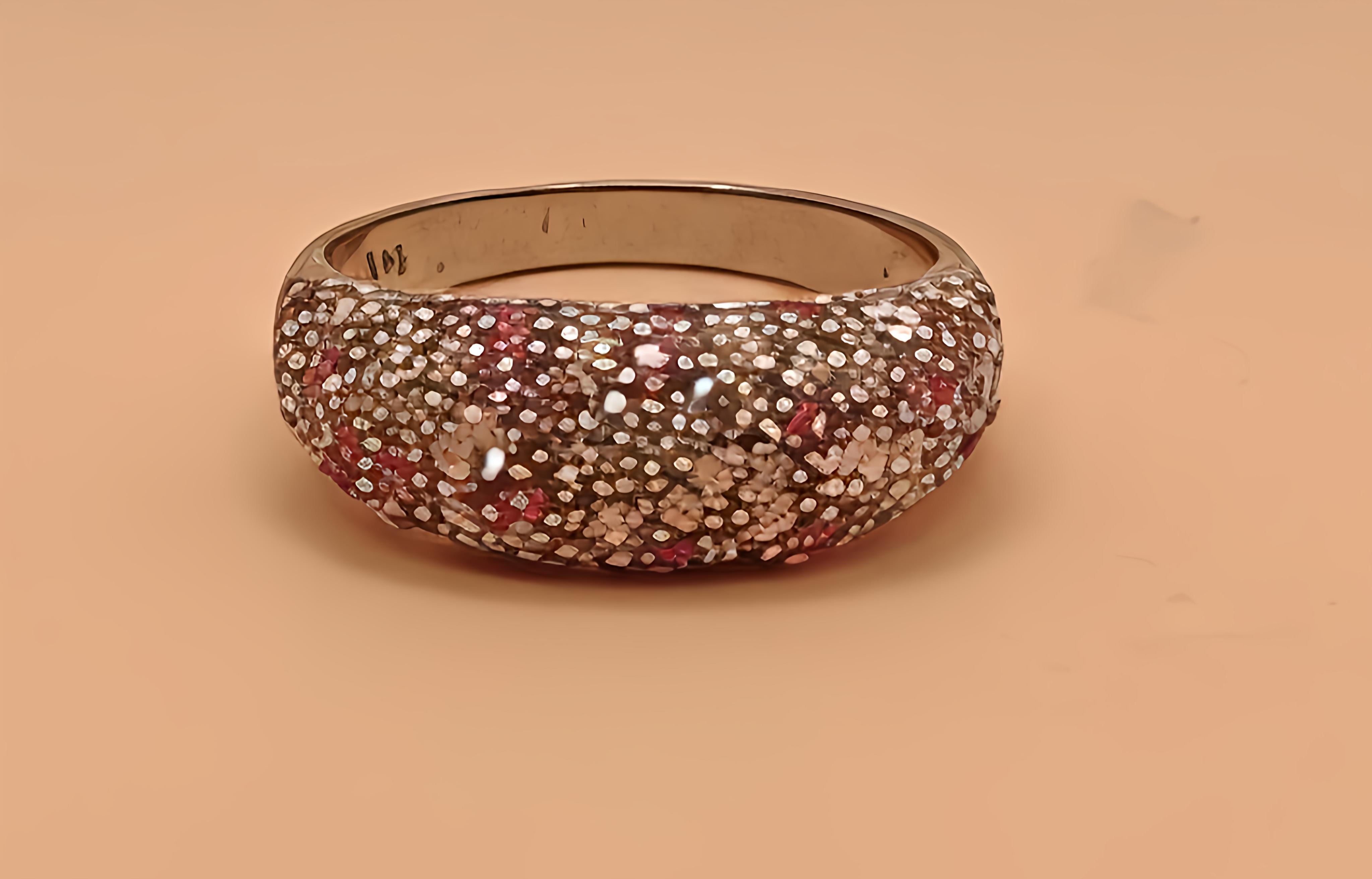 Exquisite Craftsmanship: Features a beautiful blend of clear and rose-pink stones in a pave setting for a luxurious look.