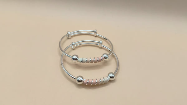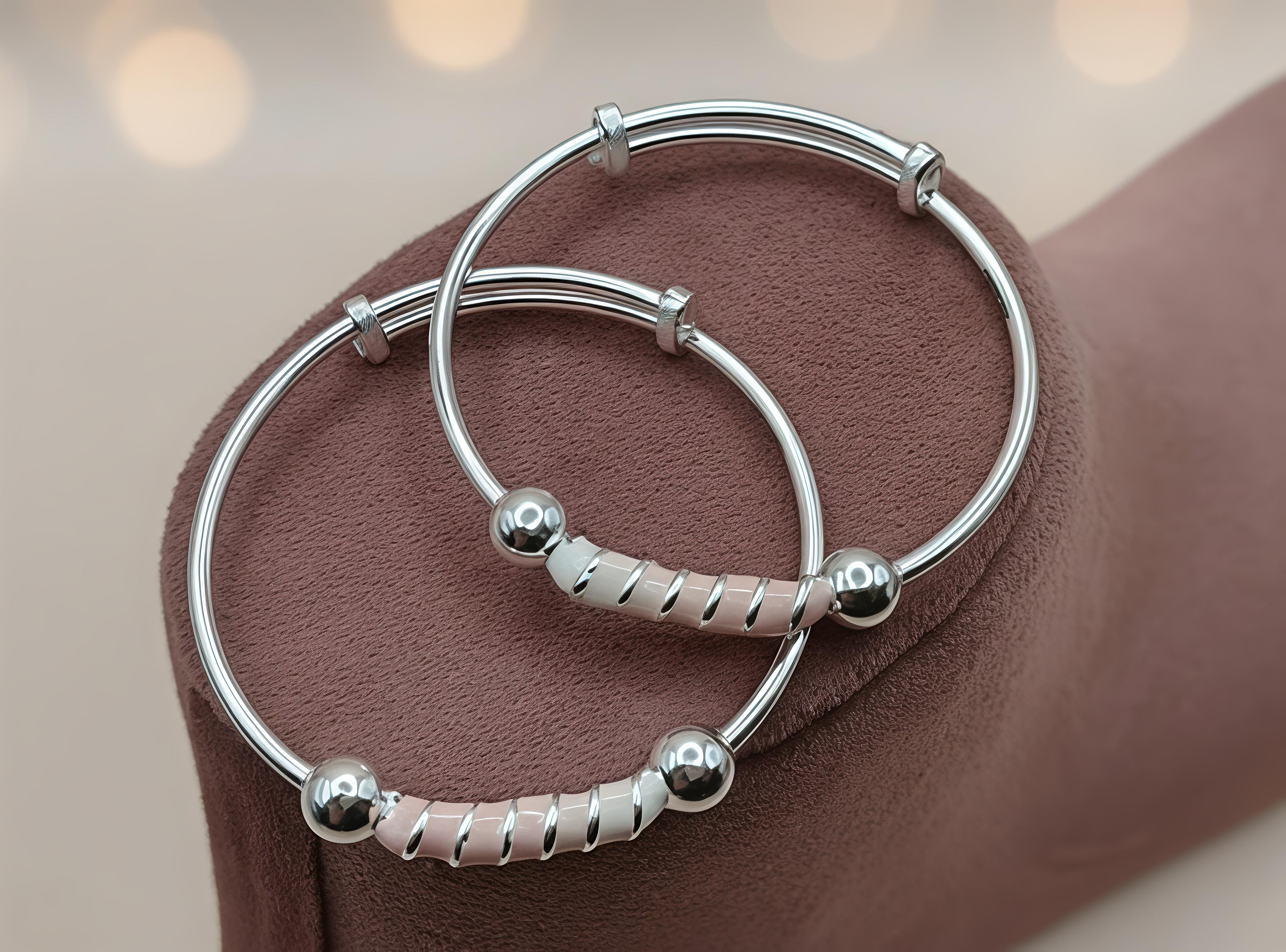 Design: These bangles feature a modern and cute look, adorned with silver beads and soft pink-white enamel work.