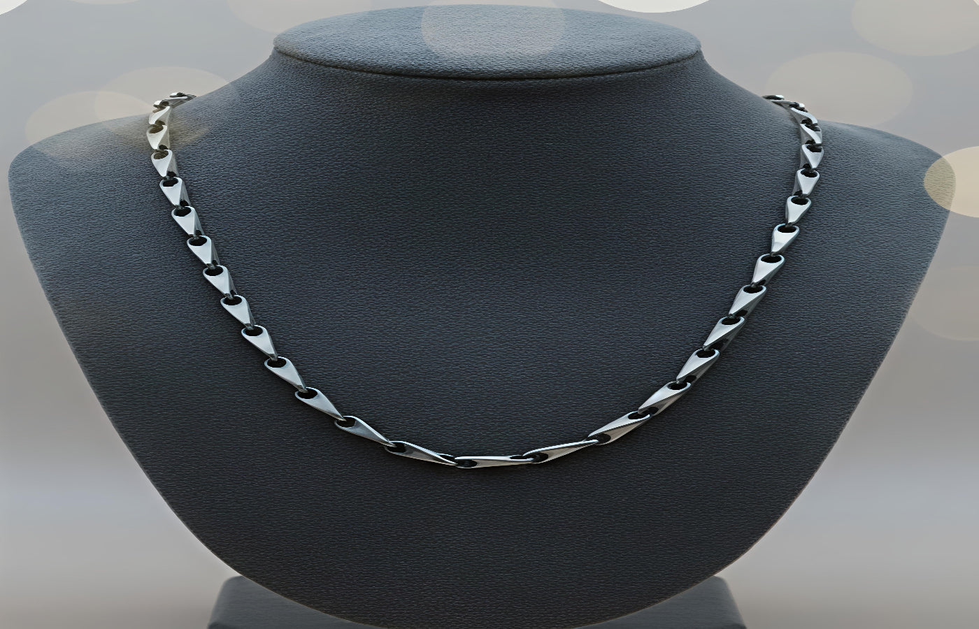 Design: Sophisticated geometric interlocking links with a sleek, polished finish and masculine oxidized accents.