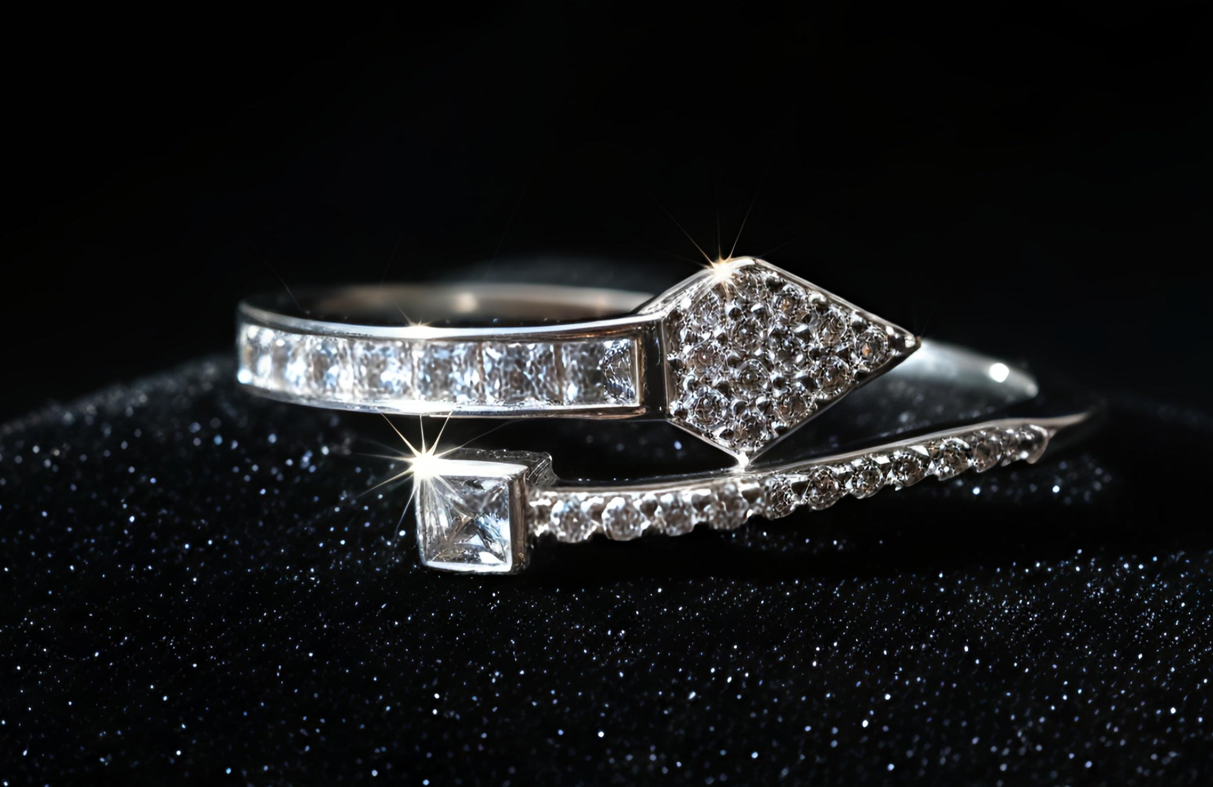 Design: Modern Dual-Band Geometric Style with Pavé Accents