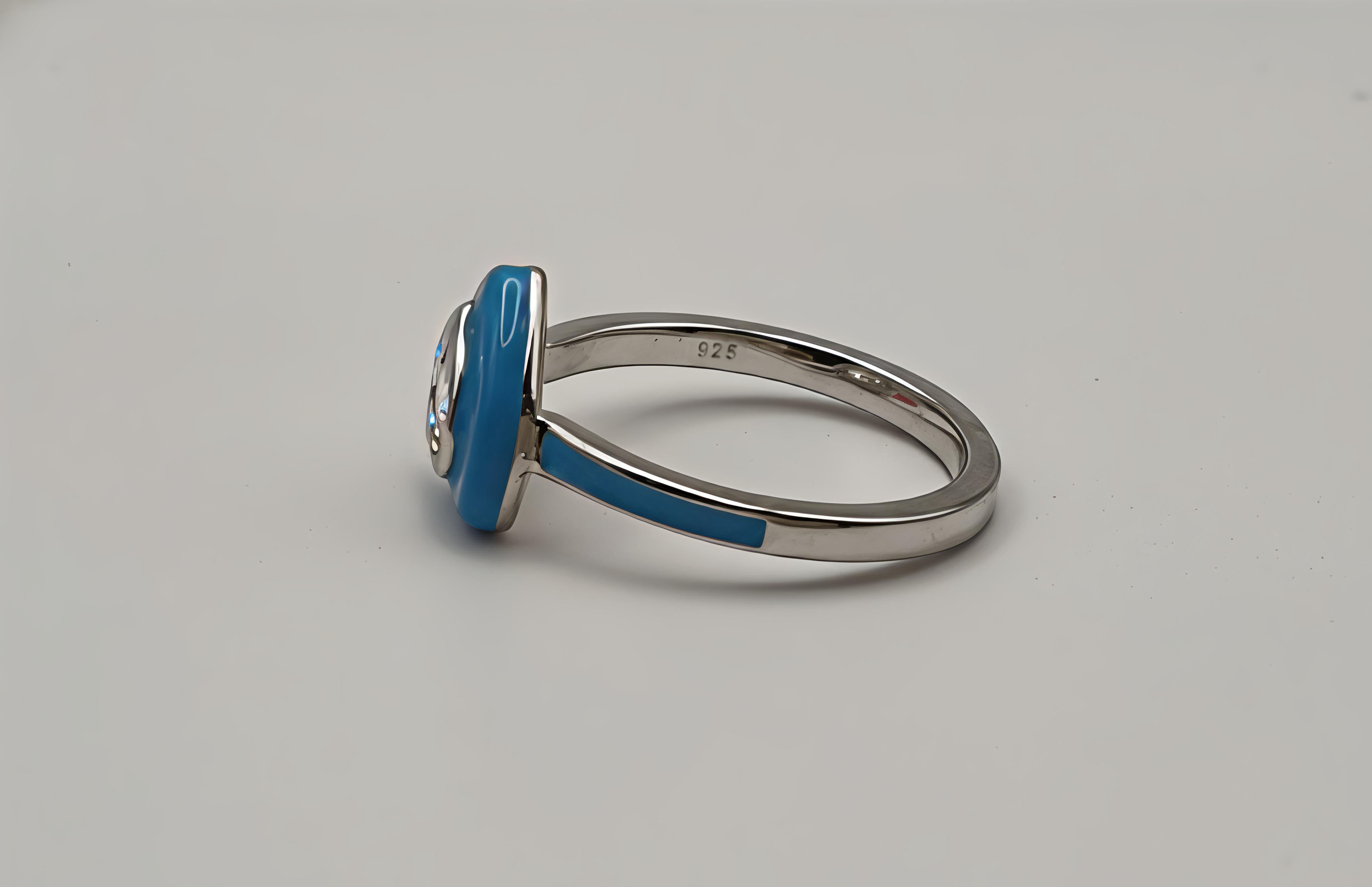 Romantic Design: The centerpiece features a stunning heart-shaped crystal, beautifully framed by a smooth, vibrant turquoise-blue enamel border that extends along the band.